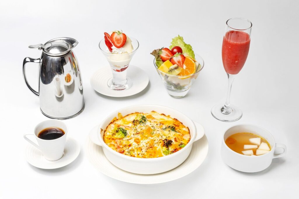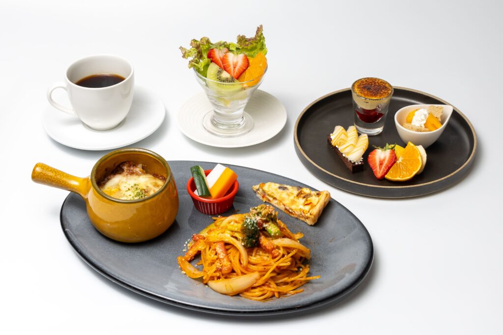 ドリンクはコーヒーまたは紅茶(ホットorアイス)、フルーツソーダなどからお一つお選び頂けます。