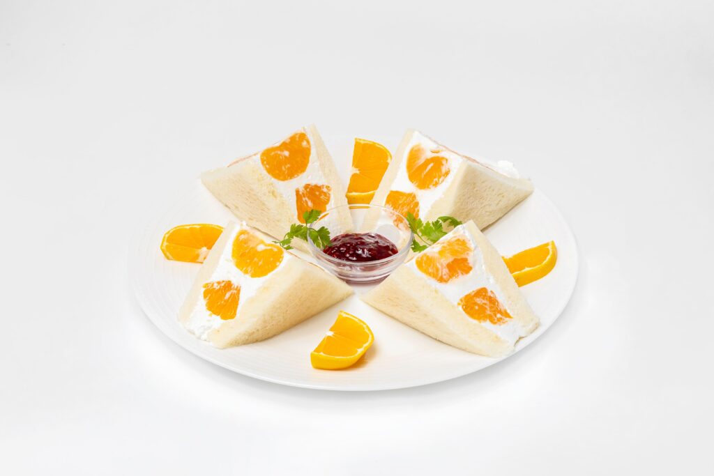 その時期の美味しいフルーツと生クリームを、ふわふわの食パンにサンドしました。