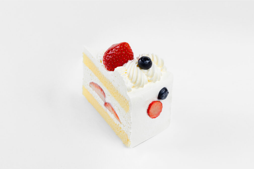 ふわふわのスポンジとなめらかな生クリームでいちごをサンドしたショートケーキです。