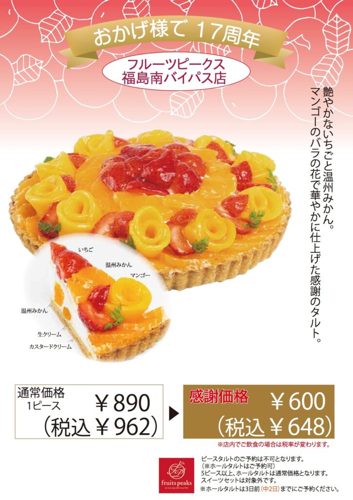 福島南バイパス店の17周年を記念したお祝いのタルトです。