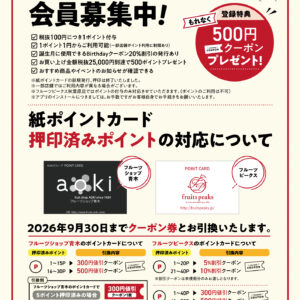 フルーツピークスでは、特典いっぱいのポイントカードをご用意しております。