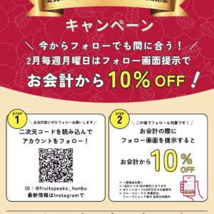 ただし果物購入時は、お誕生月の20%割引はご利用いただけません。