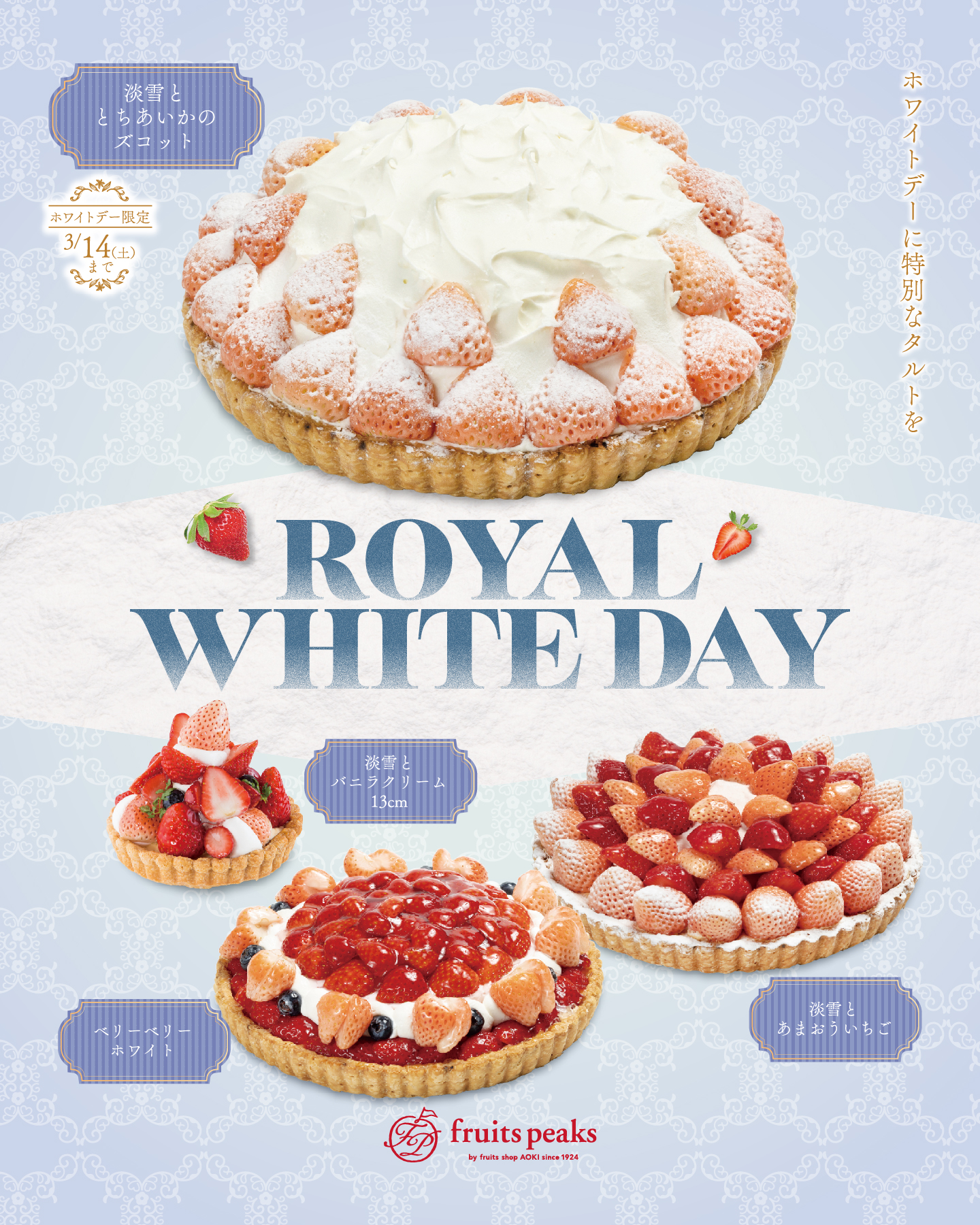 フルーツピークスではホワイトデーにおすすめのタルトを多数ご用意しております。
