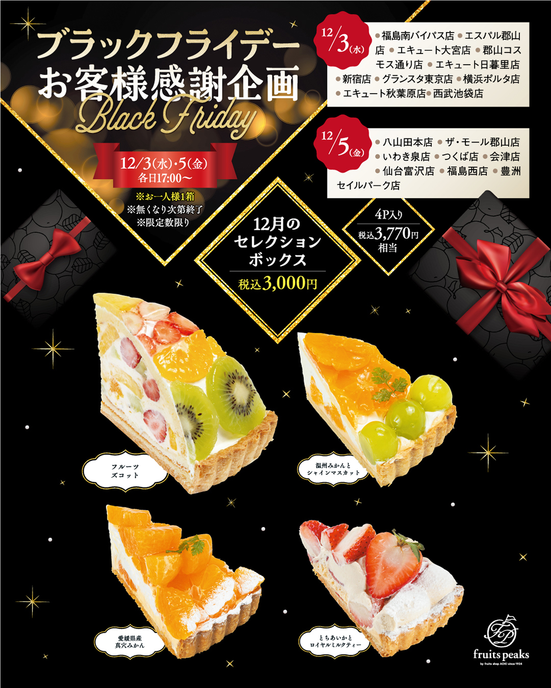 【フルーツピークス 本店、郡山コスモス通り店、福島南バイパス店、