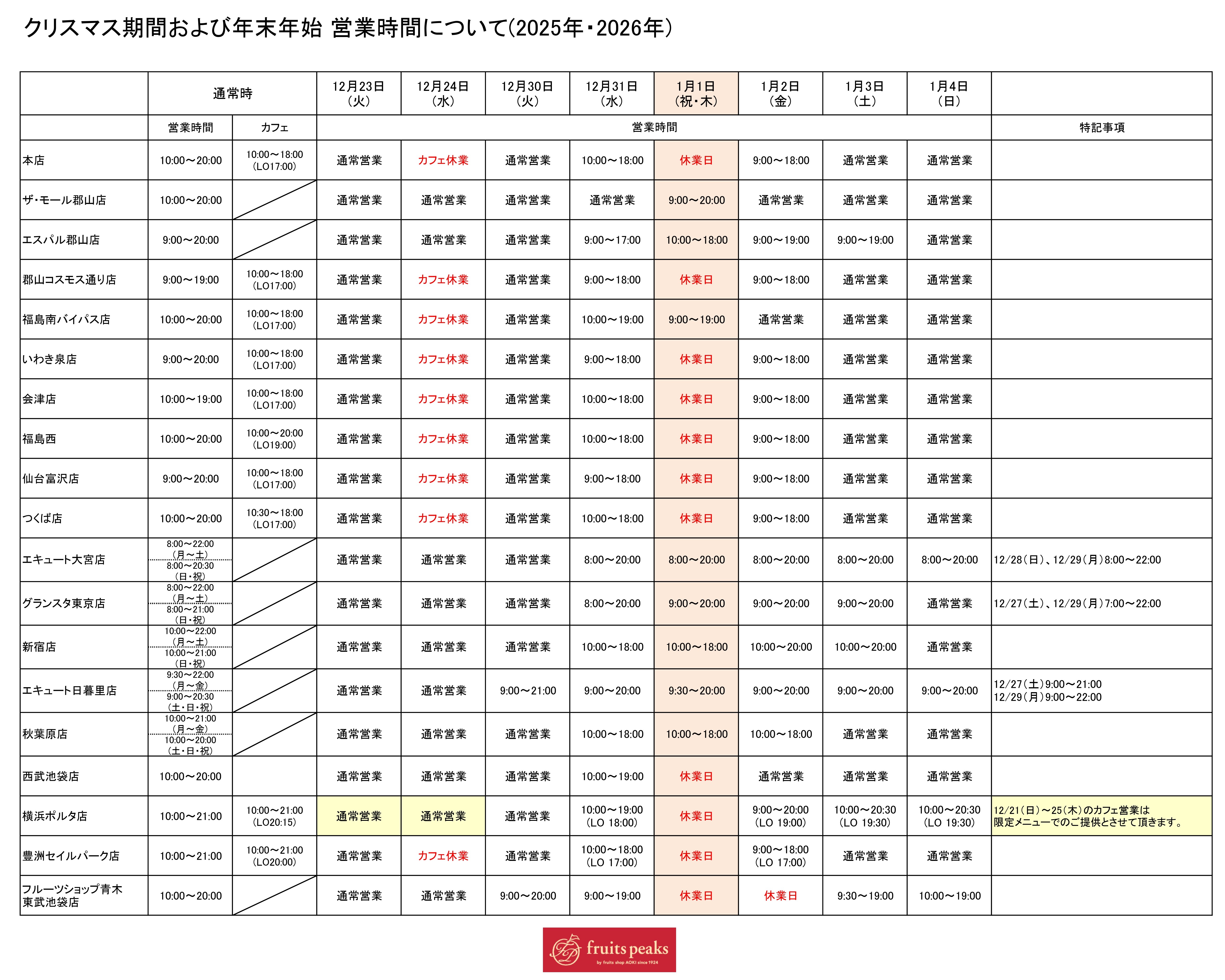 平素よりフルーツピークス グランスタ東京店をご利用頂きありがとうございます。