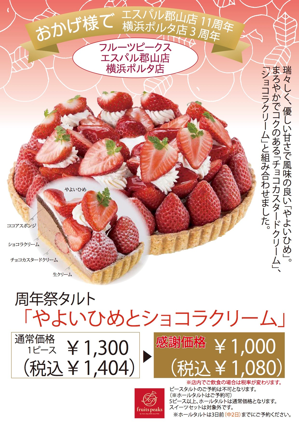 日頃のご愛顧に感謝し、周年祭タルトを